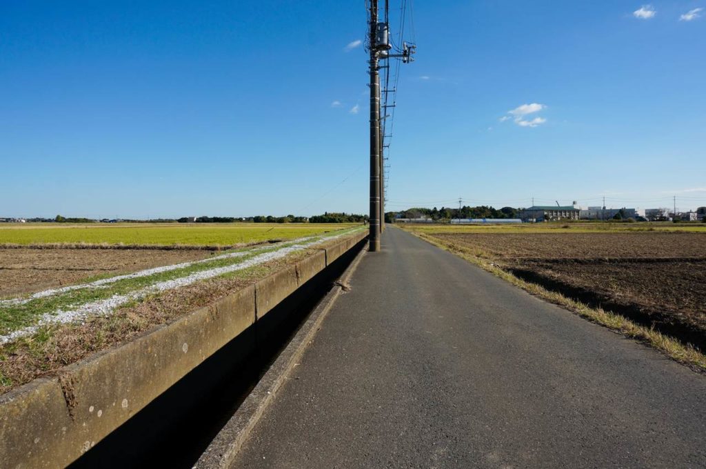 そして踏切を渡った先には、真っすぐな一本道と両脇には広大な田畑。