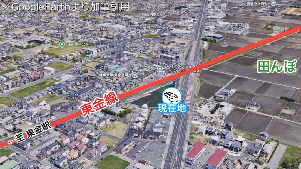 この空撮画像からもわかる通り、住宅街と田園地帯が国道126号を境にしてはっきり分かれていますね。